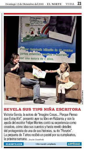 Victoria García , autora de “Imagino cosas…porque pienso que estoy ahí”Artículo en el períodico El Norte, de México , VIDA! Artículo en el períodico El Norte, de México Victoria García Navegación de entradas El nombre de José – Lilia LardoneEL OCÉANO AL FINAL DEL CAMINO de Neil Gaiman por Germán Cáceres