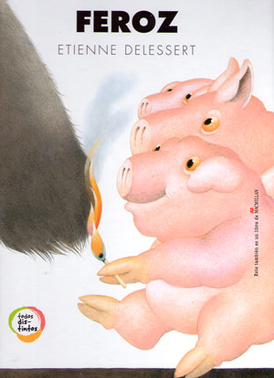 Libro Álbum, de tapas duras, 32 página, 31 x 23 cm, totalmente ilustrado a todo color por su autor que, reinventa el clásico “Los tres cerditos”. Los animales tienden una trampa al lobo para detener su carrera voraz. Esta versión ofrece una perspectiva alternativa del cuento original, extiende su significado y plantea interrogantes respecto de la agresión sin freno y el poder de la cooperación. Precioso libro, para disfrutar su lectura y su belleza visual. Finalista Premio Andersen 2010.